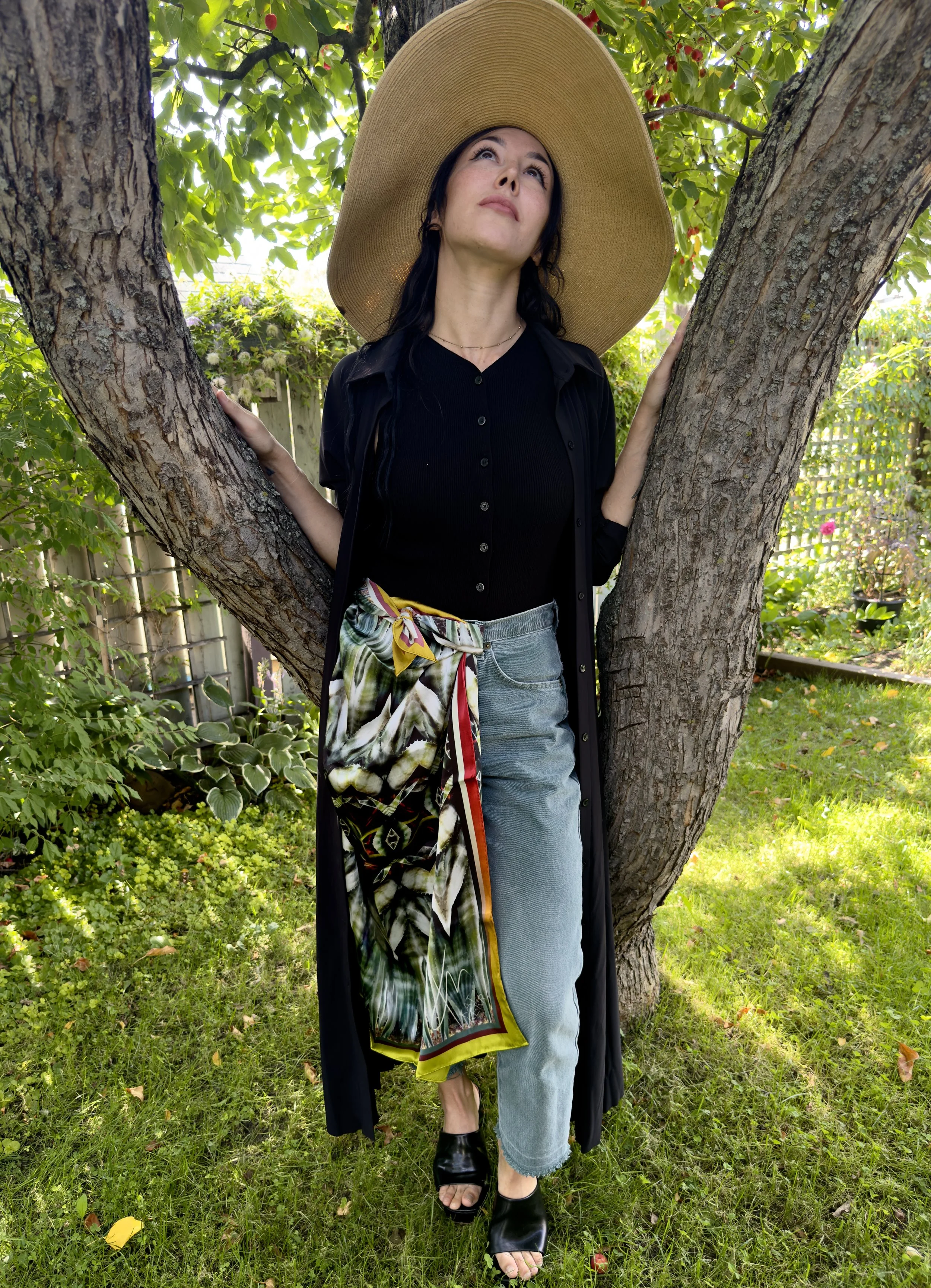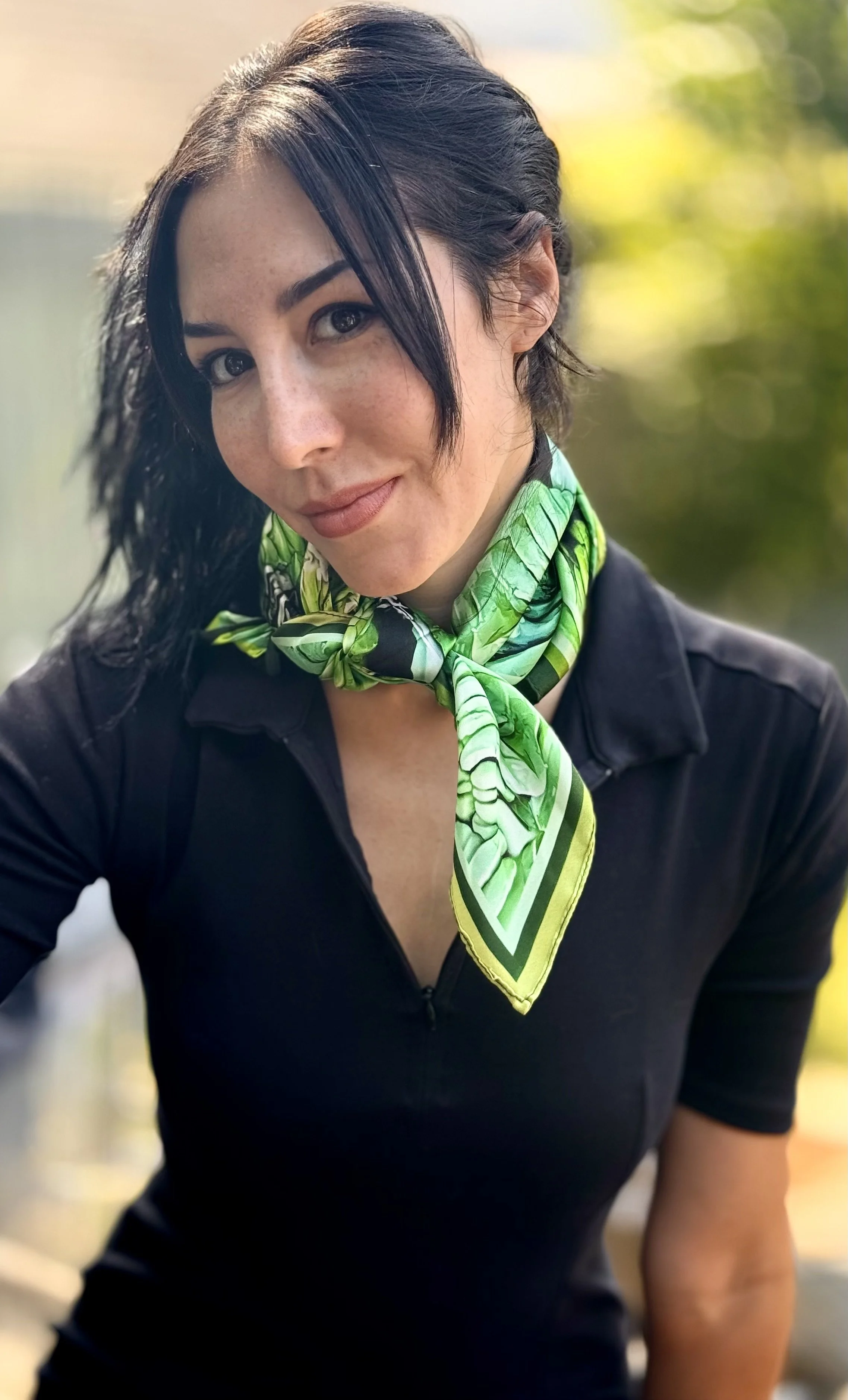 A visual exhale - feel it. A pause in the chaos, quietly confident. Diversion is a silkscape in brilliant green, speckled with rhythmic, almost meditative motifs. It tells of inventive paths to capture rain, choosing energy saving technology that has evolved over eons. This is directed minimalism. That’s the magic of Diversion — it invites you to dive deep and reinvent. Contemporary and a little subversive, wear this to spark a quiet curiosity that may lead to further investigation. What works for your personal evolution? Be intentional.